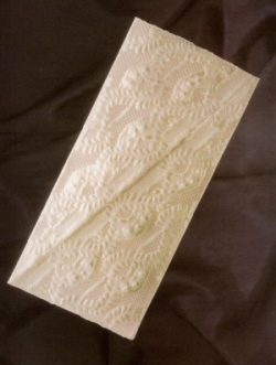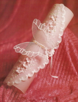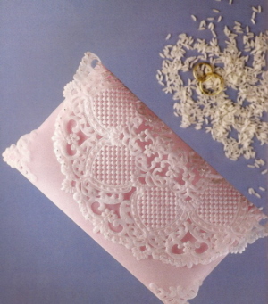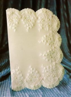 O texto do convite pode ser feito impresso em papel simples, e preso à moldura rendada do papel vegetal; ou pode ser escrito por um calígrafo habilidoso.